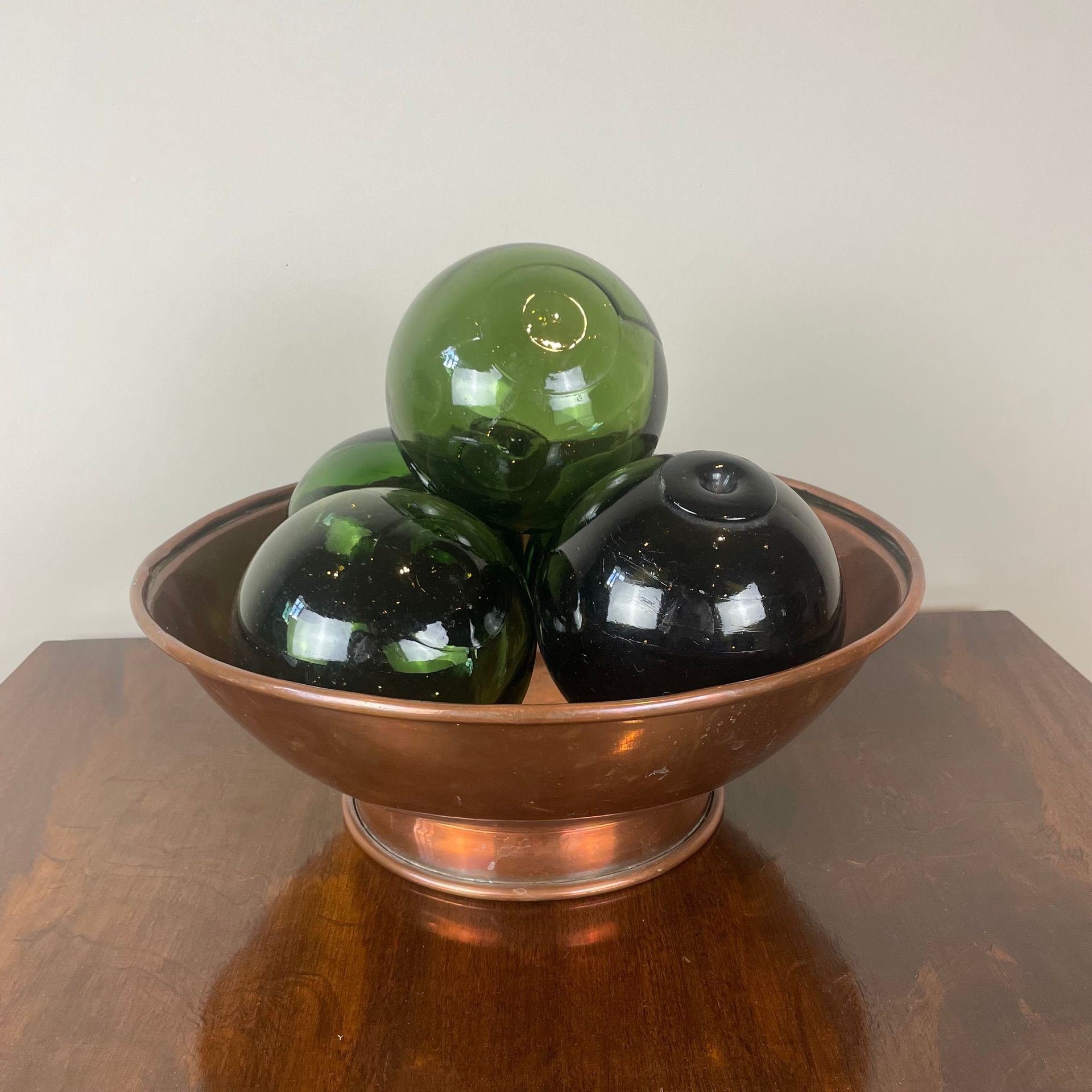 Vintage green glass fishing floats. Some irregurities in the glass as you would expect from hand blown glass. Very decorative.