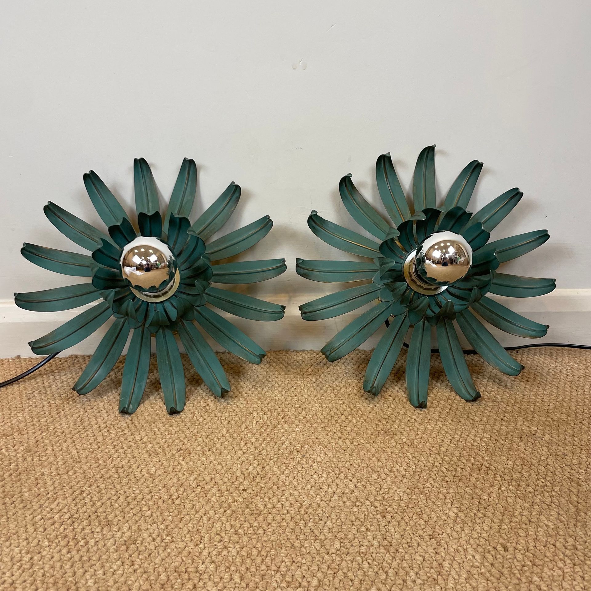 wall lights. Green painted metal of flower form.