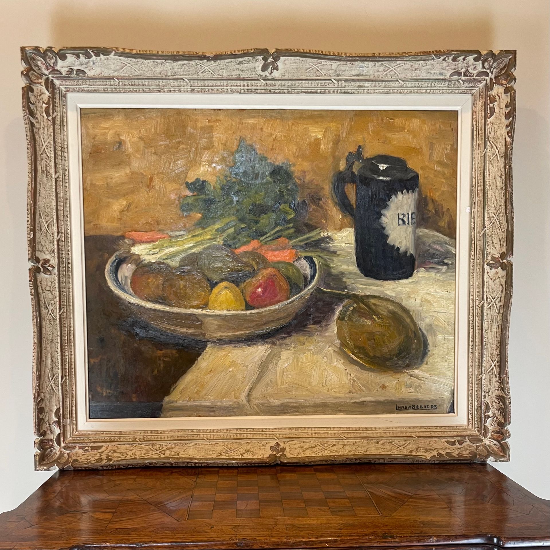 Original 1930s framed oil by Louisa Seghers. Featuring a bowl of fruit,